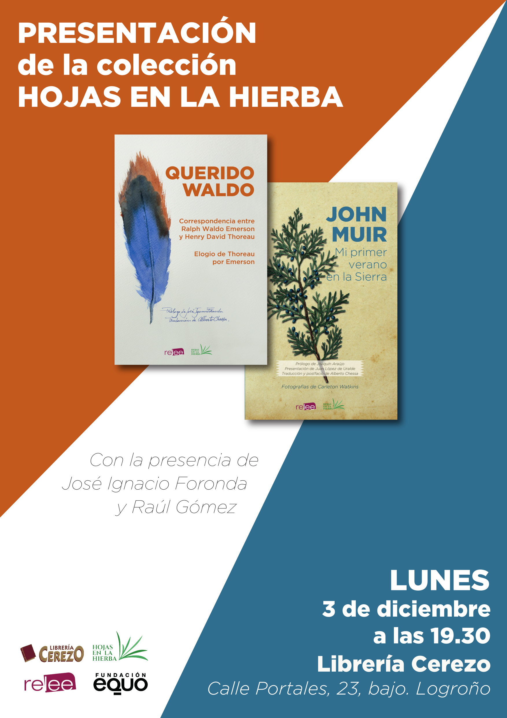 Con esta colección, como indica Juan López de Uralde (patrono fundador de la Fundación EQUO) en la «Presentación» del primer libro, Mi primer verano en la Sierra, de John Muir, «Hemos querido aportar este grano de arena, estas Hojas en la hierba, para ayudarnos a reflexionar como sociedad sobre la necesidad de establecer unos principios civilizatorios que nos permitan frenar cuanto antes las inercias destructivas de las sociedades que hemos creado». Este evento, coincidirá con el lanzamiento del segundo libro de la colección, Querido Waldo. Correspondencia de Ralph Waldo Emerson y Henry David Thoreau, que pronto saldrá a la venta.