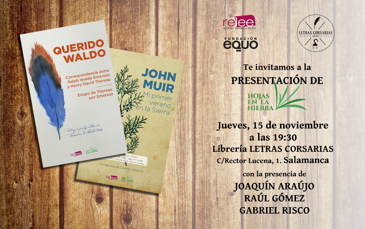 Con esta colección, como indica Juan López de Uralde (patrono fundador de la Fundación EQUO) en la «Presentación» del primer libro, Mi primer verano en la Sierra, de John Muir, «Hemos querido aportar este grano de arena, estas Hojas en la hierba, para ayudarnos a reflexionar como sociedad sobre la necesidad de establecer unos principios civilizatorios que nos permitan frenar cuanto antes las inercias destructivas de las sociedades que hemos creado». Este evento, coincidirá con el lanzamiento del segundo libro de la colección, Querido Waldo. Correspondencia de Ralph Waldo Emerson y Henry David Thoreau, que pronto saldrá a la venta.